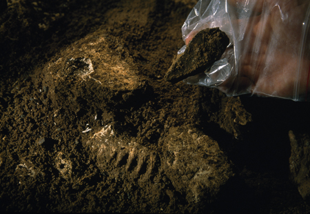 the dirt and forest debris were removed from the bones using water and a soft brush,