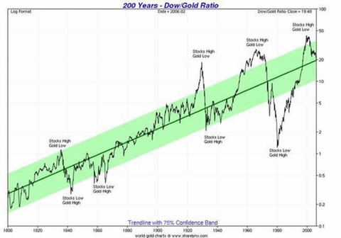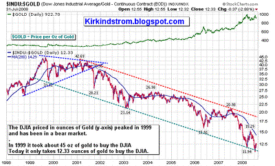 chart of the DOW Jones Industrial Average (DJIA Charts) priced in gold shows the markets