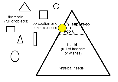 However, as the ego struggles to keep the id (and, ultimately, the organism) happy, it meets with obstacles in the world. It occasionally meets with objects that actually assist it in attaining its goals. And it keeps a record of these obstacles and aides. In particular, it keeps track of the rewards and punishments meted out by two of the most influential objects in the world of the child -- mom and dad. This record of things to avoid and strategies to take becomes the superego. It is not completed until about seven years of age. In some people, it never is completed.