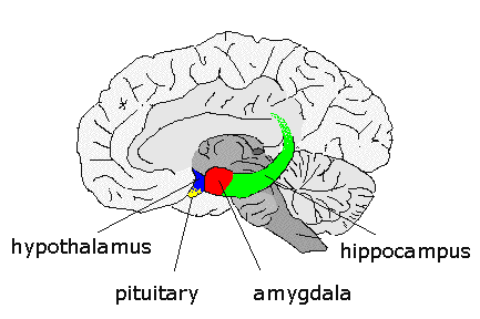 hypothalamus, the hippocampus, the amygdala, and several other nearby