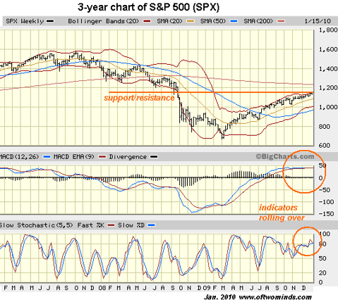 time. Stochastics have rolled over and are dropping below the overbought level.